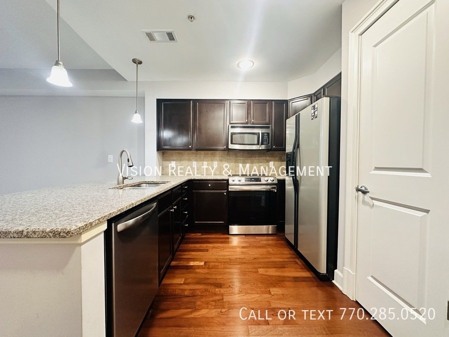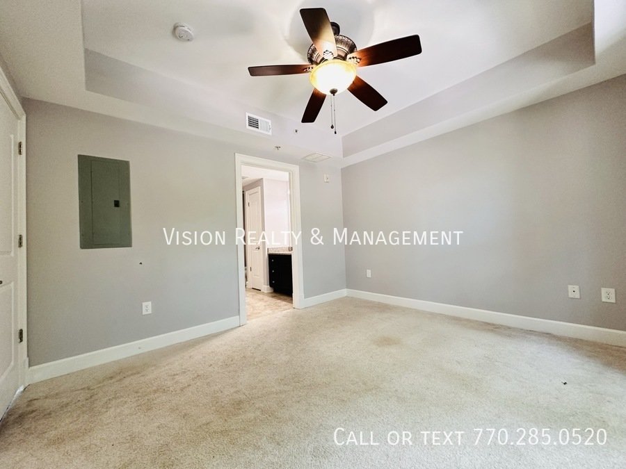 One bedroom condo in the beautiful One River Place Sandy Springs community. This unit has a large, open floorplan with a additional separate office space perfect for working from home. Conveniently located near The Battery, 75, 285, and right behind one of Atlanta's premier restaurants, Ray's on the River! Private shaded balcony overlooks the courtyard and entrance. One River Place has so much to offer: 24/7 guard, concierge, covered parking, and top of the line amenities. The clubhouse features two swimming pools, fire pits, a state of the art gym, game room, grilling area, conference room, and more. The community also has running trails that go along the Chattahoochee River, a peaceful pond, and a private dog park. Schedule your tour today!