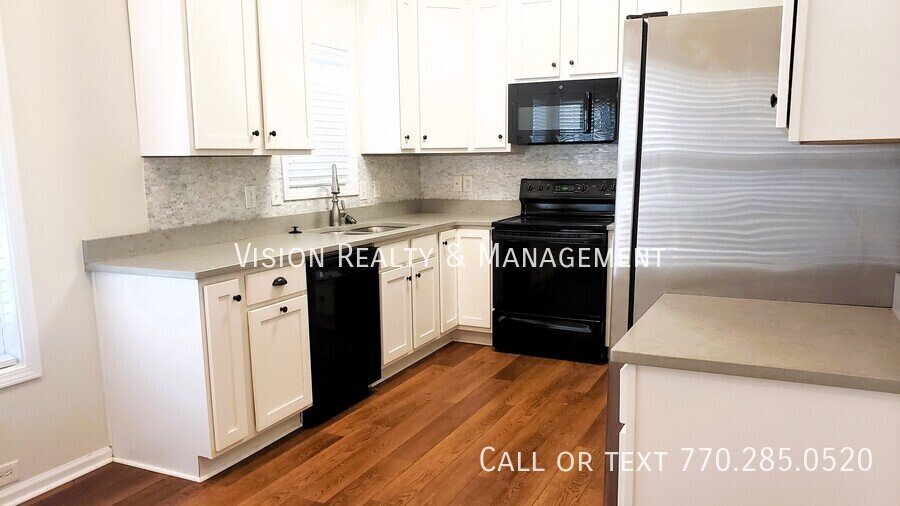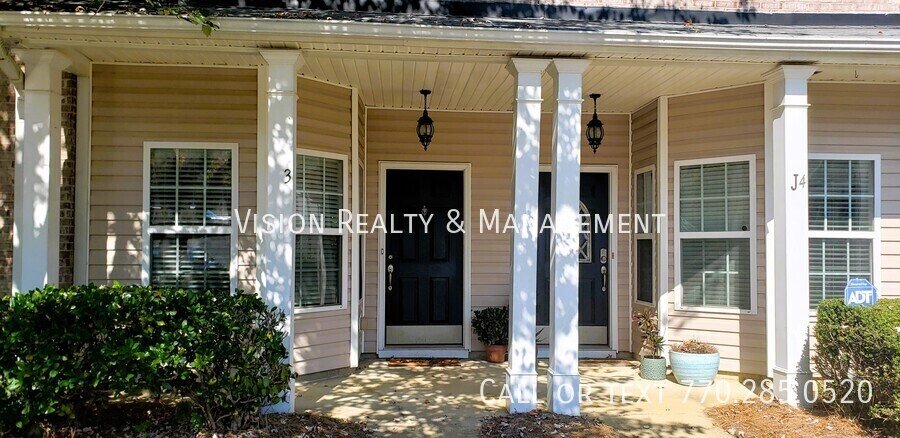 A wonderful private deck in the back with plenty of room for a BBQ and to entertain is just one of the highlights of this townhome. Covered, welcoming entry takes you to a 3 bedroom, 2 and a half bath townhome that is close to all of life's conveniences. This has an open floor plan with a half bath on the main and the bedrooms located on the 2nd floor. The crisp, white kitchen features a bright and sunny eat-in area that is the perfect place to start your day. More than ample cabinets and counter space. The living/dining area provides direct access to the deck. Conveniently located on the second level are the bedrooms, bathrooms and has a dedicated laundry area with built-in shelving. Two assigned parking places with open access makes this a great option. This active and sought-after community offers a lake for fishing, pool, tennis and clubhouse within the city limits of Carrollton. In addition to the monthly rent, Residents will pay an additional $35.00 each month for a Resident Benefits Package. Details can be found here: https://www.visionwestgeorgia.com/resident-benefits-package